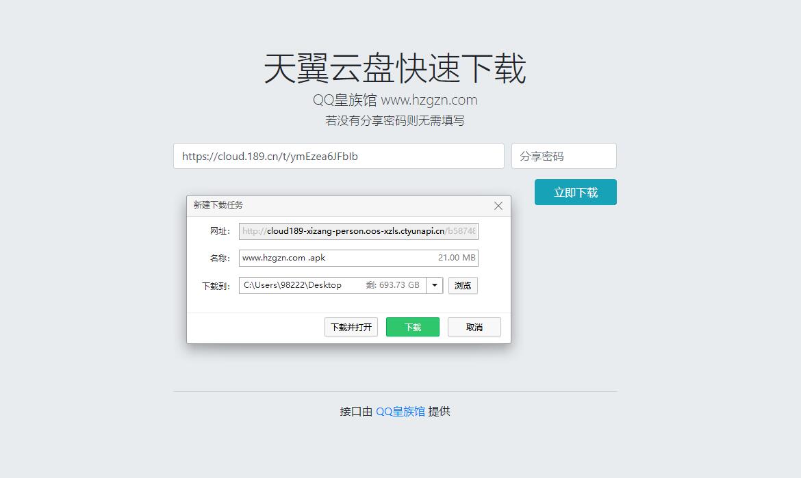 天翼云盘免登陆一键解析快速下载网站HTML源码