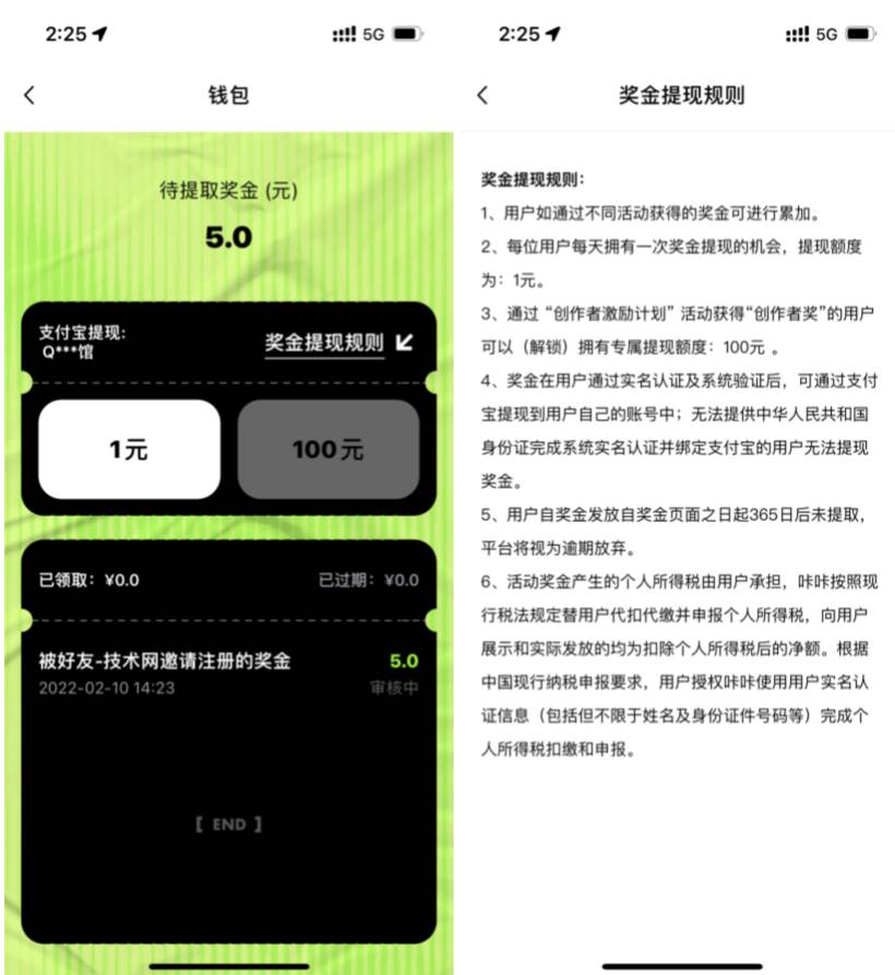 本文是下载咔咔APP登录后输入邀请码送5元现金红包,每日提现1元到支付宝;5元现金红包分5天提现到账,需要完成实名认证和人脸识别,介意的无视本文!