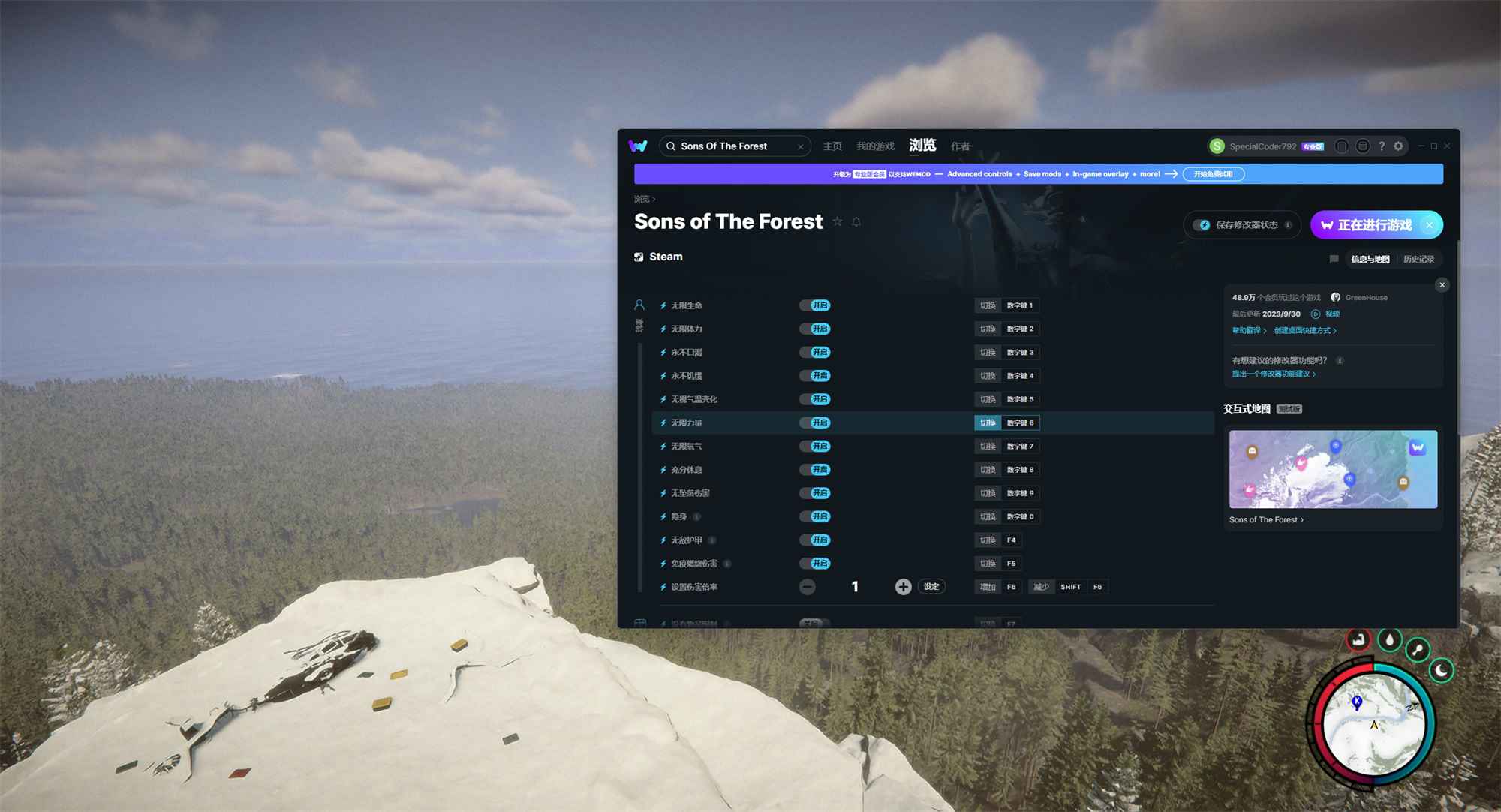 WeMod是国外非常知名的PC游戏辅助工具,在这款软件中可以搜索任何游戏的修改器,MOD等资源。无数作者为各种游戏制作各类辅助工具,支持超过5000款PC单机游戏并且每天都会更新支持更多新的游戏,已解锁专业版会员付费功能!下载即可立即使用。 【软件特色】 2、自动游戏检测,找到游戏后,我们会检测其版本并将其与我们*台上的一名培训师配对。无需猜测。 3.安全。 游戏内修改器菜单软件截图