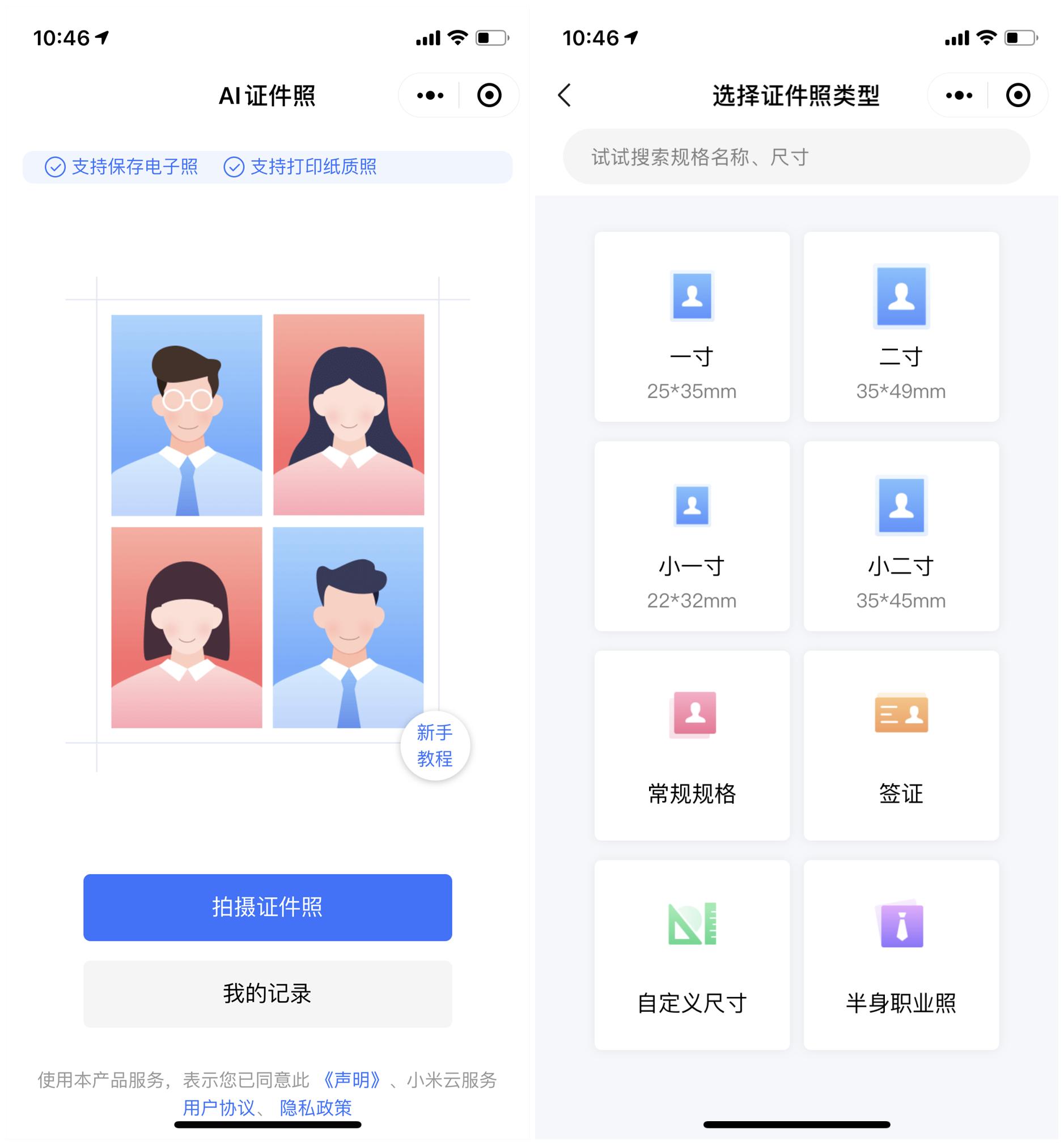 今天小编发现一个很好用的小程序,可以用来生成自己AI证件照,之前有发过类似软件;这款小程序就可以完成,这也是小米公司出的,目前也没有任何广告使用很简单;支持保存电子照和打印纸质照,规则名称和尺寸也很多,可以选择相册上传或拍照。