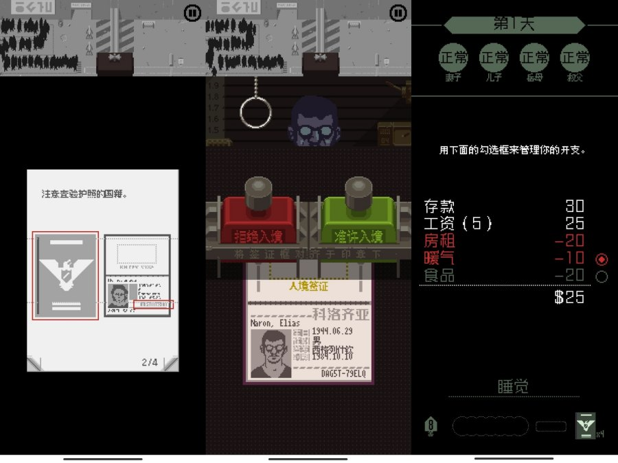 每天主角需要面对各种各样的入境者,以及需要审查各种各样的证件,并以判定这名入境者是否符合规定准许入境,主角每天的收入与正常处理的入境者数量挂钩并...