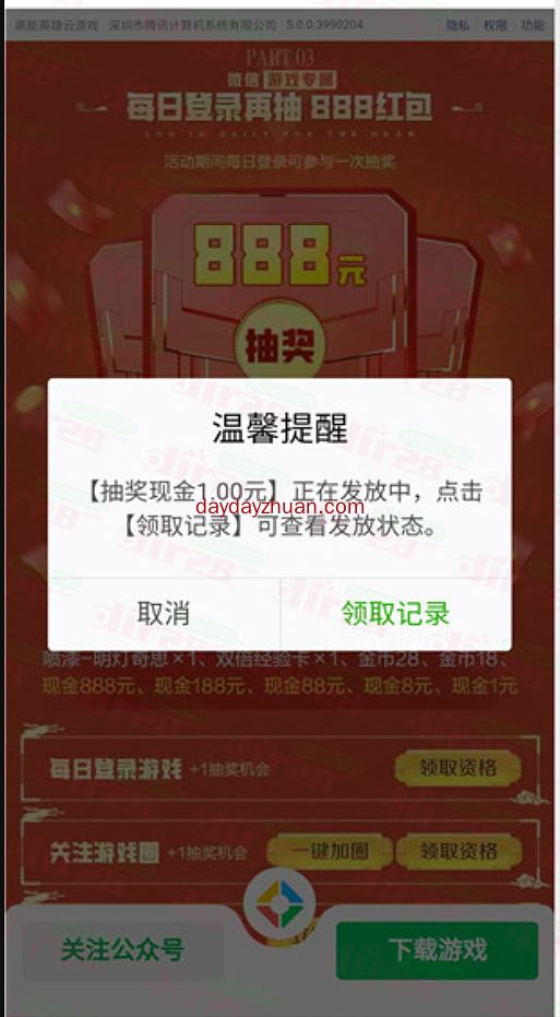高能英雄元宵节活动来了,新人注册领1~88元红包,然后冲击再领7元以上的红包,一共可以撸8元以上,运气好点就不止了,红包数量有限先到先得,天天线报网的赚友赶紧上吧。 1、微信扫码进入活动,在活动页下载游戏,然后注册,冲击,完成指定任务就能领红包。 2、红包数量有限,完成一个就领一个,别等所有一起完成再领。