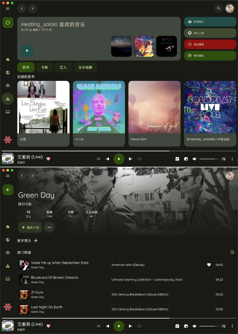 支持扫码登录、首页推荐、资料库、播客、私人fm、逐词歌词、云盘音乐等功能。