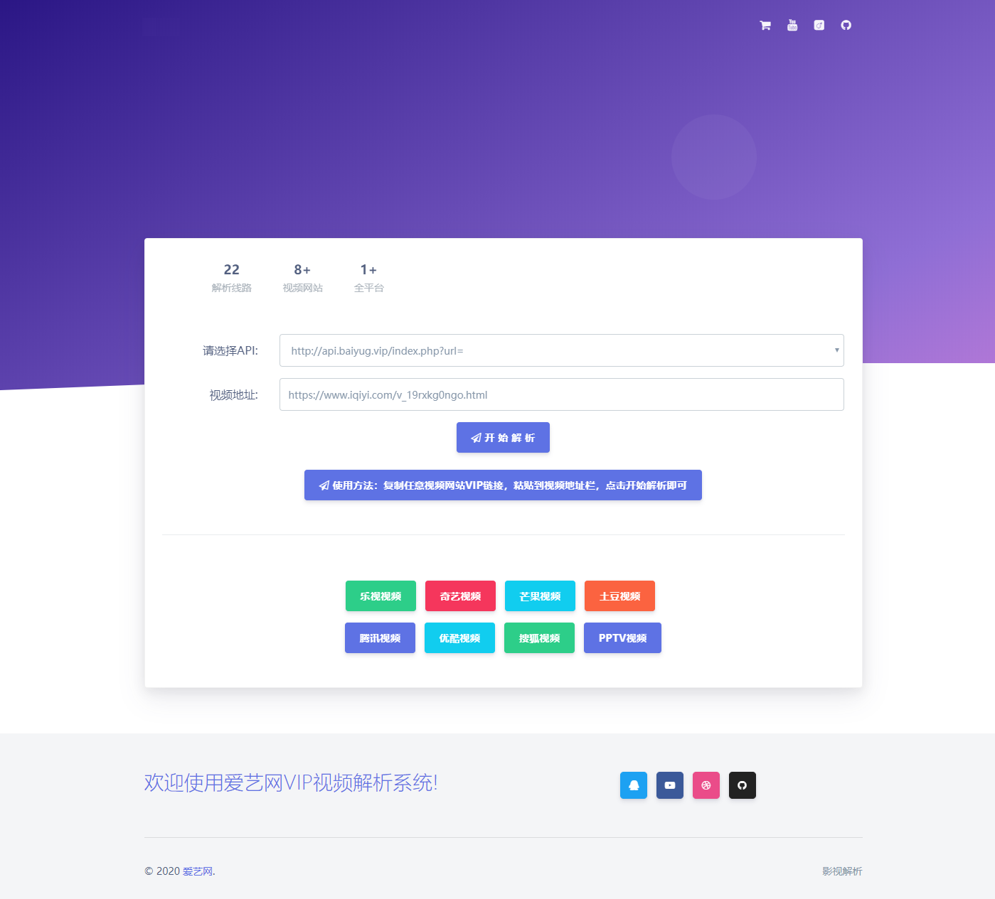 访问即可使用,无需数据库,为了界面"观不添加播放器,解析后跳转到解析接口页面,解析接口是网上随便找的,可以自己在index.html替换。